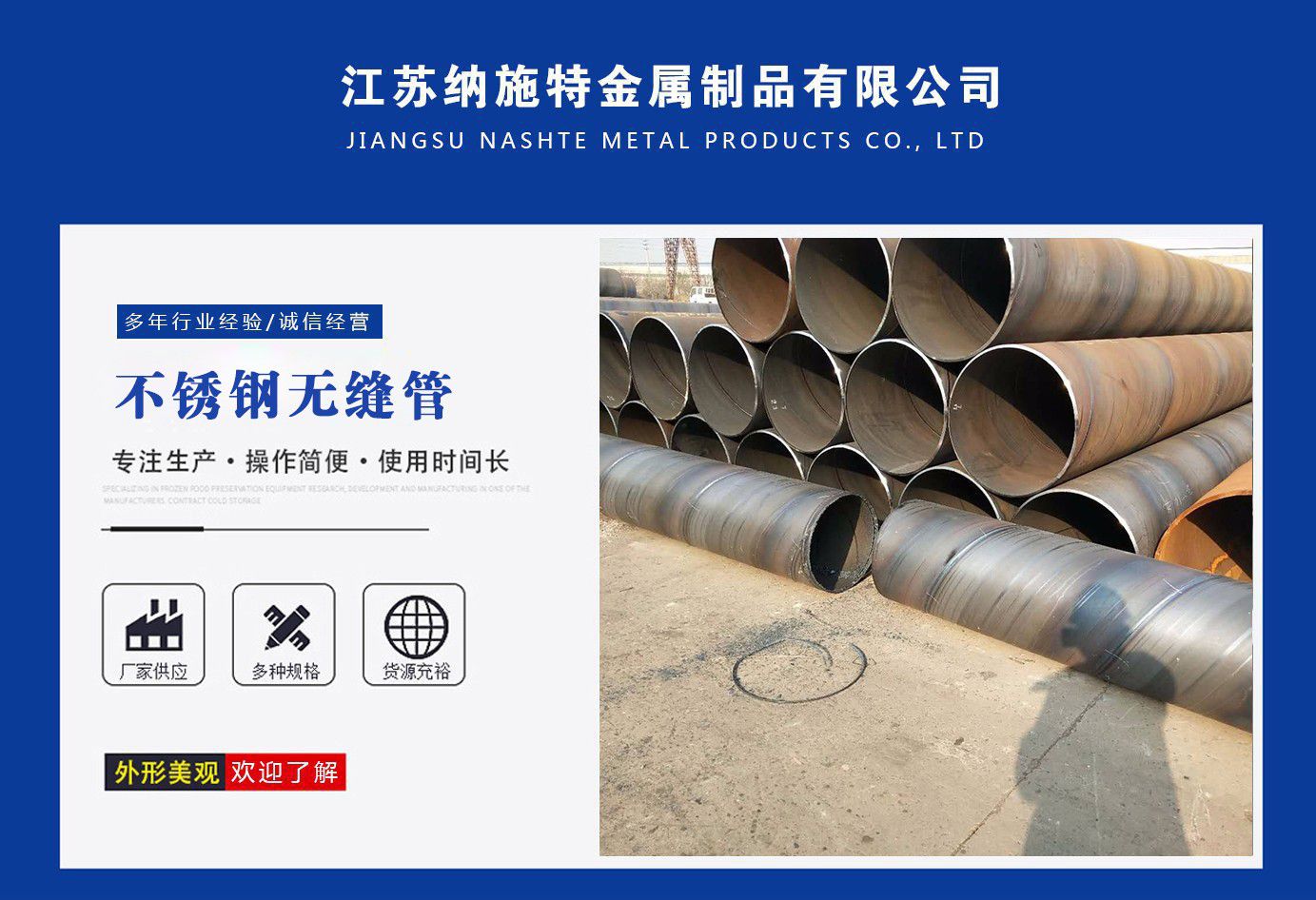 江蘇納施特金屬制品有限公司是一家集生產(chǎn)205不銹鋼無縫管,2507不銹鋼無縫管,316l不銹鋼焊管廠家,不銹鋼工業(yè)焊管廠家,厚壁無縫鋼管廠家等產(chǎn)品,公司庫存多規(guī)格齊全、質(zhì)量保證。公司一貫以服務(wù)至上、質(zhì)量至上、價格合理、客戶至上、讓利客戶、薄利多銷為原則,誠實(shí)守信為宗旨。 公司秉承“優(yōu)質(zhì)的品質(zhì)和服務(wù)創(chuàng)造企業(yè)品牌”之宗旨,與國內(nèi)外多家知名廠商建立了長期穩(wěn)定的合作伙伴關(guān)系,精心匯聚各廠商的品牌產(chǎn)品,實(shí)現(xiàn)了資源互補(bǔ),以適應(yīng)市場的不同需求,協(xié)助廣大廠商提高自身的競爭力,是您的理想合作伙伴。 公司下屬:業(yè)務(wù)部、財(cái)務(wù)部、快運(yùn)部、運(yùn)輸部、倉儲部、加工部、(自備貨車、吊車、行車、自動切割、半成品)免費(fèi)為用戶提供裝卸等一條龍服務(wù)。保證用戶利益、互惠互利做生意、誠心誠意交朋友。 服務(wù)承諾:提供優(yōu)質(zhì)的不銹鋼及有關(guān)產(chǎn)品,遵守道德標(biāo)準(zhǔn),努力提供獨(dú)特的產(chǎn)品和高水平服務(wù)。 質(zhì)量承諾:隨時為客戶提供產(chǎn)品和服務(wù),充分領(lǐng)會客戶要求,盡職盡責(zé),永無例外,竭盡全力,持續(xù)發(fā)展。 公司秉承:“顧客至上,銳意進(jìn)取”的經(jīng)營理念,堅(jiān)持“客戶至上”的原則為廣大客戶提供優(yōu)質(zhì)的服務(wù)。 愿我們公司和社會各界同仁、諸位朋友、尊貴的各位客戶攜手并進(jìn),共同發(fā)展,同繪新世紀(jì)的宏偉藍(lán)圖! 公司宗旨:優(yōu)質(zhì)的品質(zhì)和服務(wù)創(chuàng)造企業(yè)品牌。 經(jīng)營理念:以...